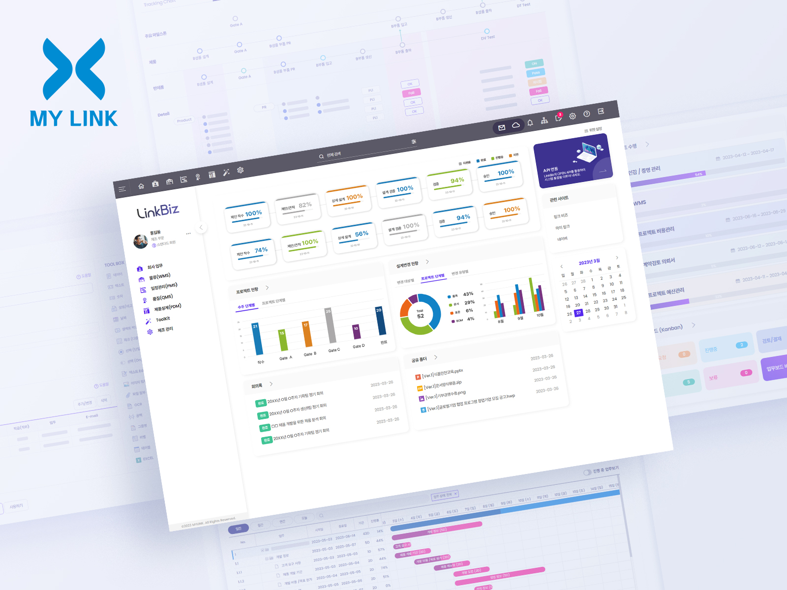 (LinkBiz) LinkBiz는 중소/중견 제조업을 위한 클라우드 SaaS 형태의 웹 구독형 종합 제조 IT 서비스입니다. B2B 서비스 대상를 하고 있으며 재고/창고관리(WMS), 일정관리(PMS), 품질관리(QMS), 업무관리툴(Toolkit), 문서관리(DMS), 등의 모듈형으로 독립적이면서 서로 연계가 가능합니다. API연동을 통해 메신저나, 협업툴, 기존 전사적자원관리시스템(ERP)과 생산관리시스템(MES) 등 타 시스템과 연계가 가능하고, 고객 스스로 커스터마이징하여 업무양식과 프로세스 설정이 가능한 제조 솔루션입니다. 또한, 엑셀, 워드, 캐드 등 실제 업무 작업을 시스템화하여 제조와 협업을 연계한 워크플로우 서비스를 제공합니다.